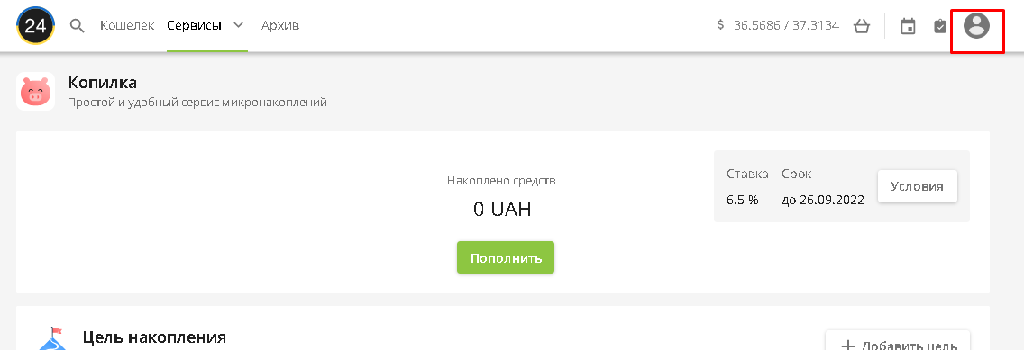 - Дождаться загрузки страницы профиля и навести курсор на значок профиля;