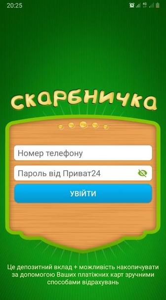 Приложение Копилка позволяет удаленно управлять всеми видами депозитных счетов, в том числе и основным. Для этого нужно его инсталлировать на телефонное устройство и авторизоваться. Перед тем, как пользоваться приложением, в нем нужно зарегистрироваться. В качестве логина вводится финансовый номер телефона клиента, а пароль для входа приходит в СМС сообщении или в Push уведомлении в Приват24.