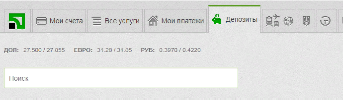 - кликнуть по вкладке «Сервисы» в Приват24 и в выпадающем меню выбрать раздел «Копилка» — альтернативный вариант переход в раздел с депозитами и выбор подраздела «Мои депозиты»;