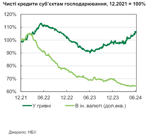 Річні темпи зростання обсягів чистих гривневих кредитів бізнесу становлять 12%. Швидше зростає портфель кредитів малим та середнім підприємствам. Попит бізнесу обмежується повільним відновленням економіки, перебоями у постачанні електроенергії та все ще високими військовими ризиками.