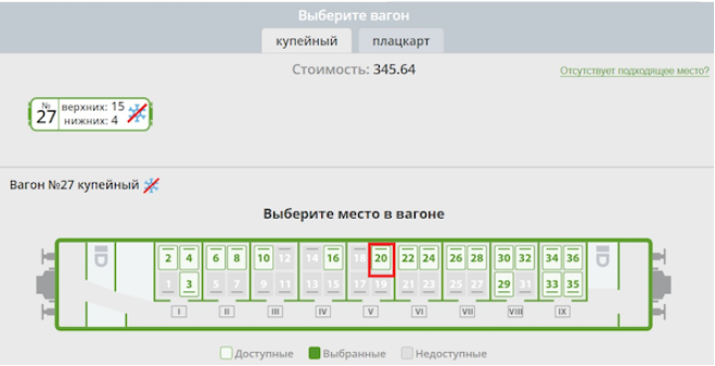 Клієнту пропонується обрати певний вагон і конкретне місце. При цьому він одразу буде знати, на верхній чи нижній полиці йому доведеться їхати. Визначившись з параметрами поїздки, слід клікнути на цифри з номером вагона і місця, і заповнити форму запиту даними про пасажирів, для яких купуються квитки. Також потрібно вказати необхідність в додаткових послугах, за рахунок яких вартість квитка може стати дорожчою.