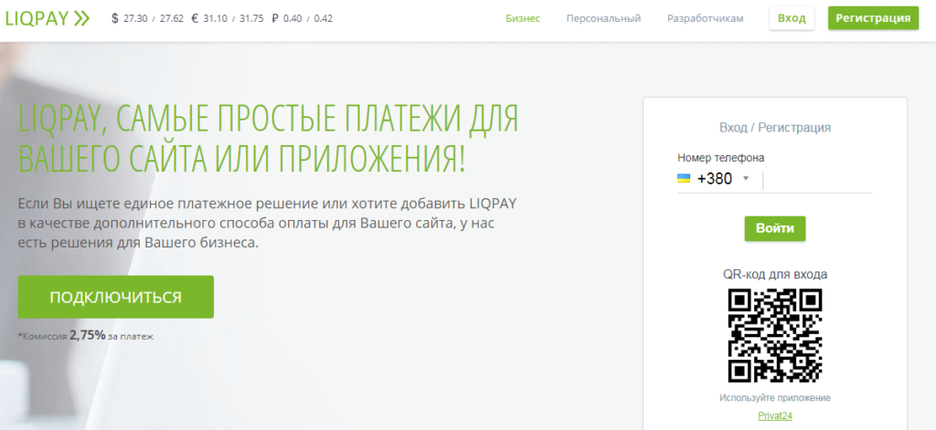 Другий варіант – реєстрація в LiqРay через Приват24. У цьому випадку використовується QR-код додатка.